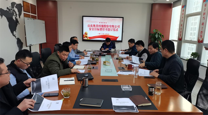 为全面贯彻《安全生产法》和《山东省安全生产条例》,认真做好安全生产各项工作,筑牢安全防线,保障员工安全、公司健康发展;全面实现2022年度安全生产管理目标,有效预防和控制各类事故,确保明年各项安全目标的逐级分解和严格落实。继续深化“一岗双责”管理制度,坚持按照“谁主管、谁负责”、“谁审批、谁负责”、“谁在岗、谁负责”的原则,明确责任,落实到人,分工负责,齐抓共管的工作要求,公司于2022年2月9日在会议室召开2022年度安全生产目标责任书签订仪式。